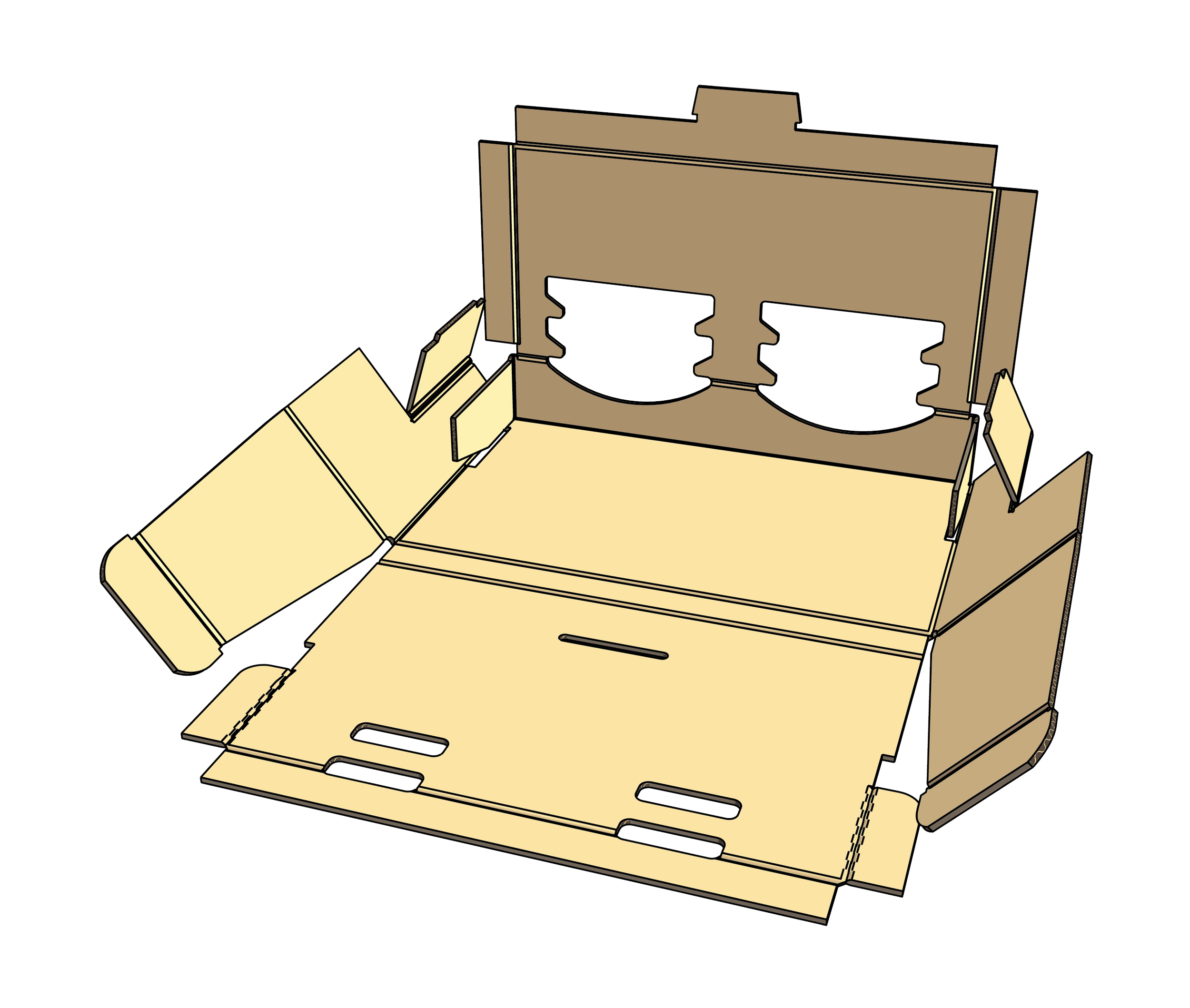 Detailed CAD files are engineered once product assortment and quantities are confirmed. Over 20 self-locking corrugated components come together to create this particular display.