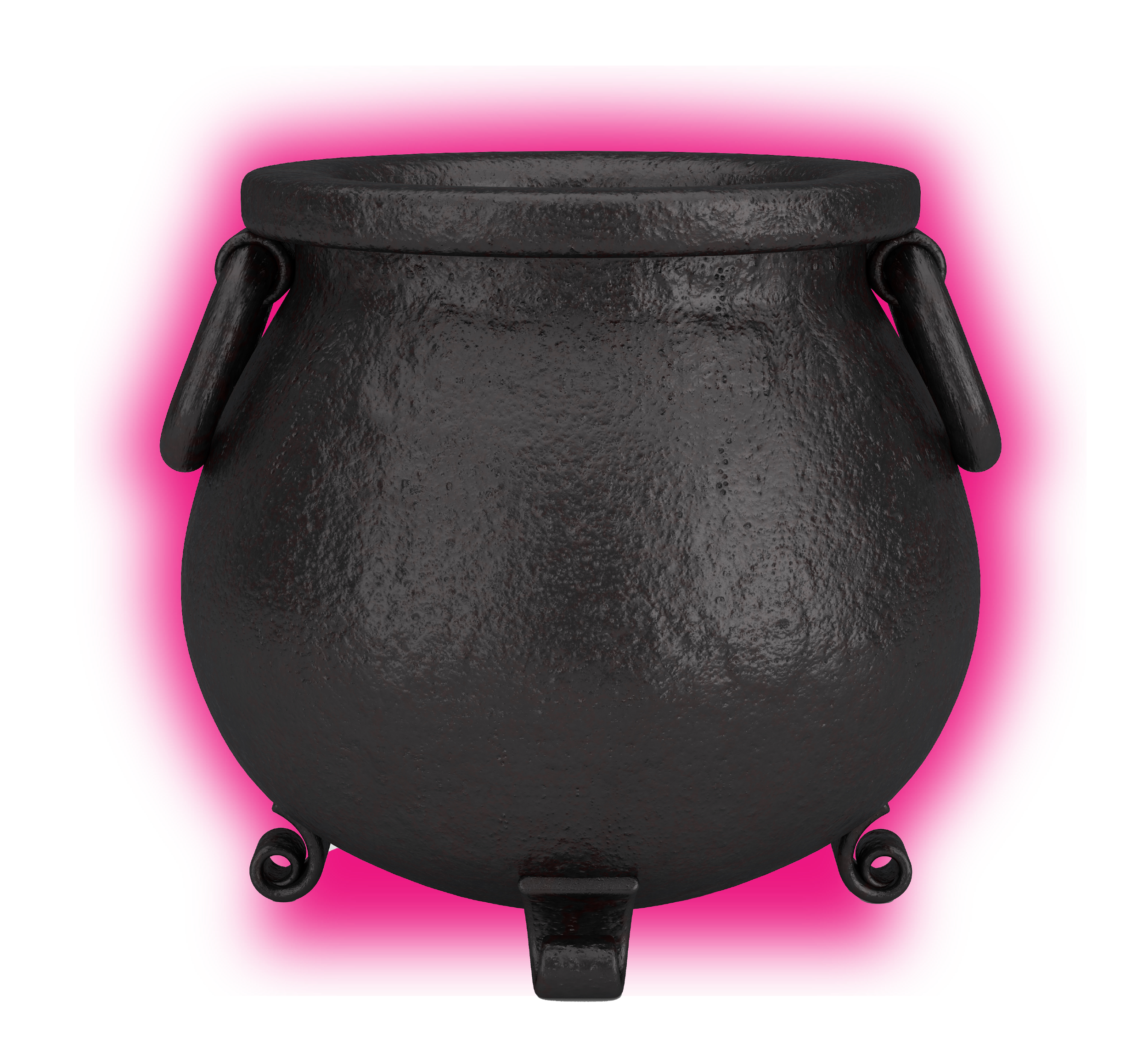Ethereal pink smoke and cauldron surrounding the base tray.